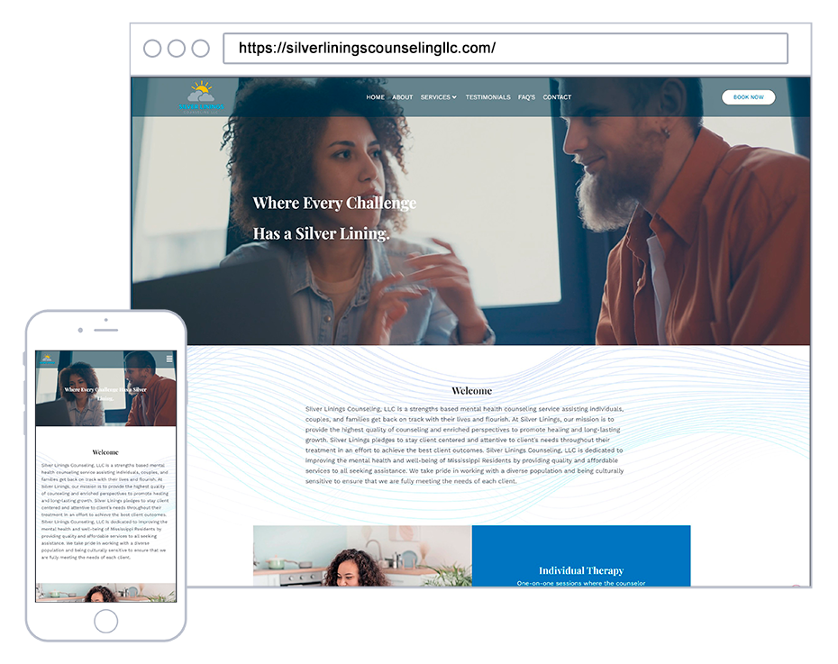 Our artists worked closely with Erwin to bring his vision for Silver Linings Counseling to life. Through a series of collaborative discussions, our artist listened carefully to Erwin’s ideas about what the name “Silver Linings” represents — hope, clarity, and finding light through adversity. Together, they explored color palettes, imagery, and symbolism that would best convey these values. The result was a custom logo that feels both personal and professional, blending warmth and stability with a sense of renewal. This creative partnership laid the foundation for a cohesive brand identity that seamlessly carried over into the website design and overall presentation of the practice.